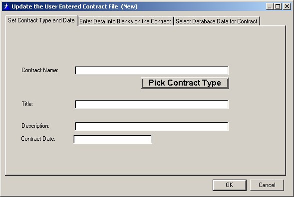 The Contract Name field will be filled in by the type selection. Enter a description to help you recognize the purpose of the form when you return to the program later. Then put a date in the Contract Date field.