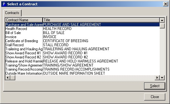 • Click the Pick Contract Type button to see the list of available forms and select one from the following screen (click image to enlarge):
