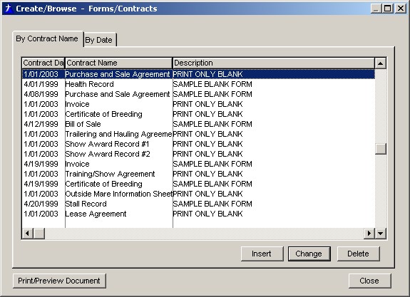 This is the forms browse screen you arrive at by clicking the Forms/Contract Button or selecting Browse Forms from the menu: